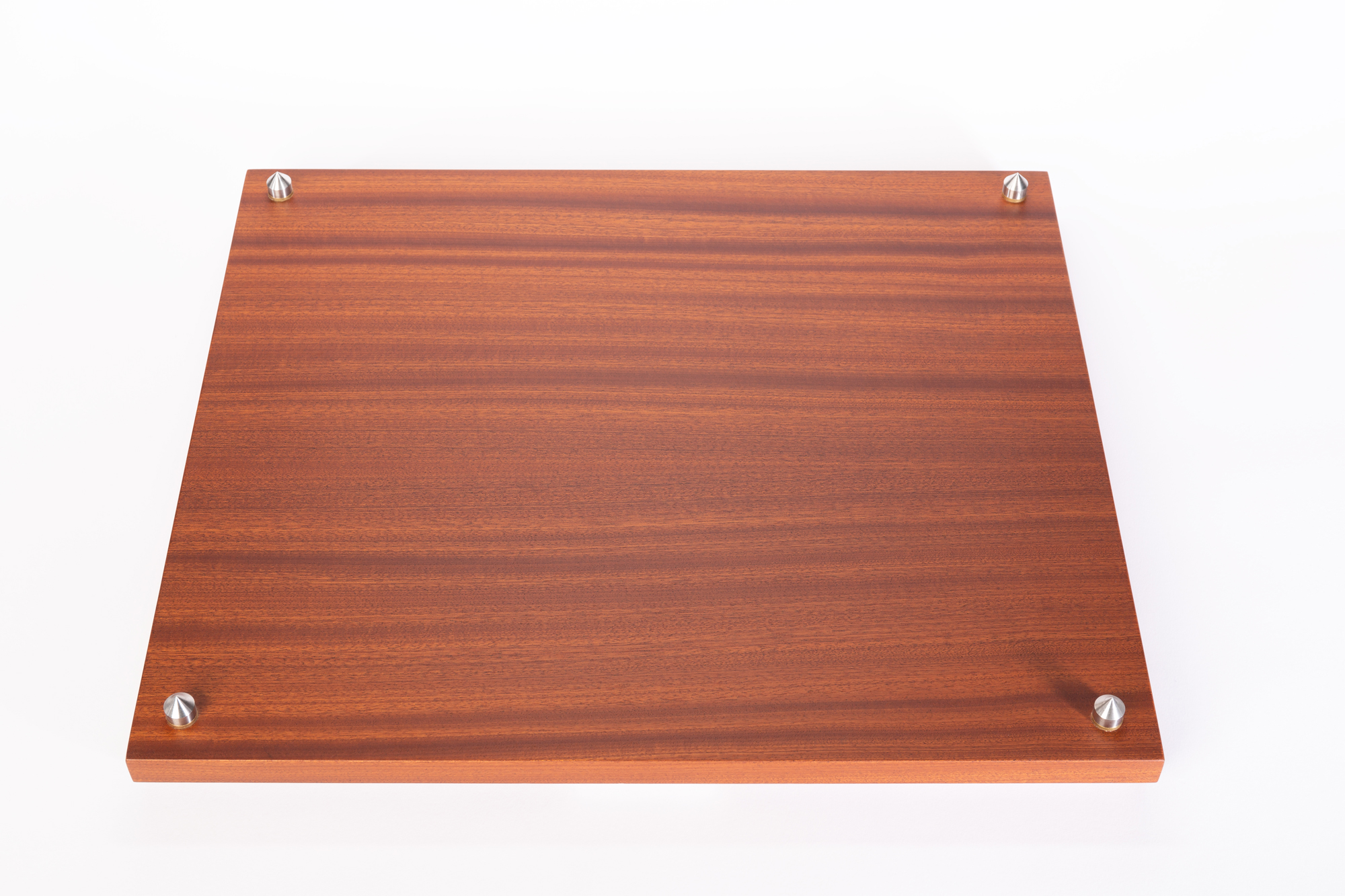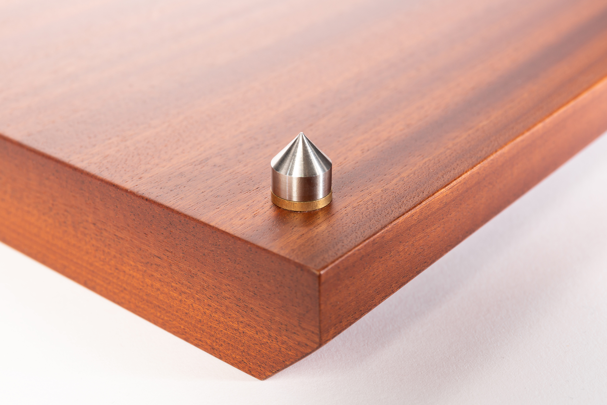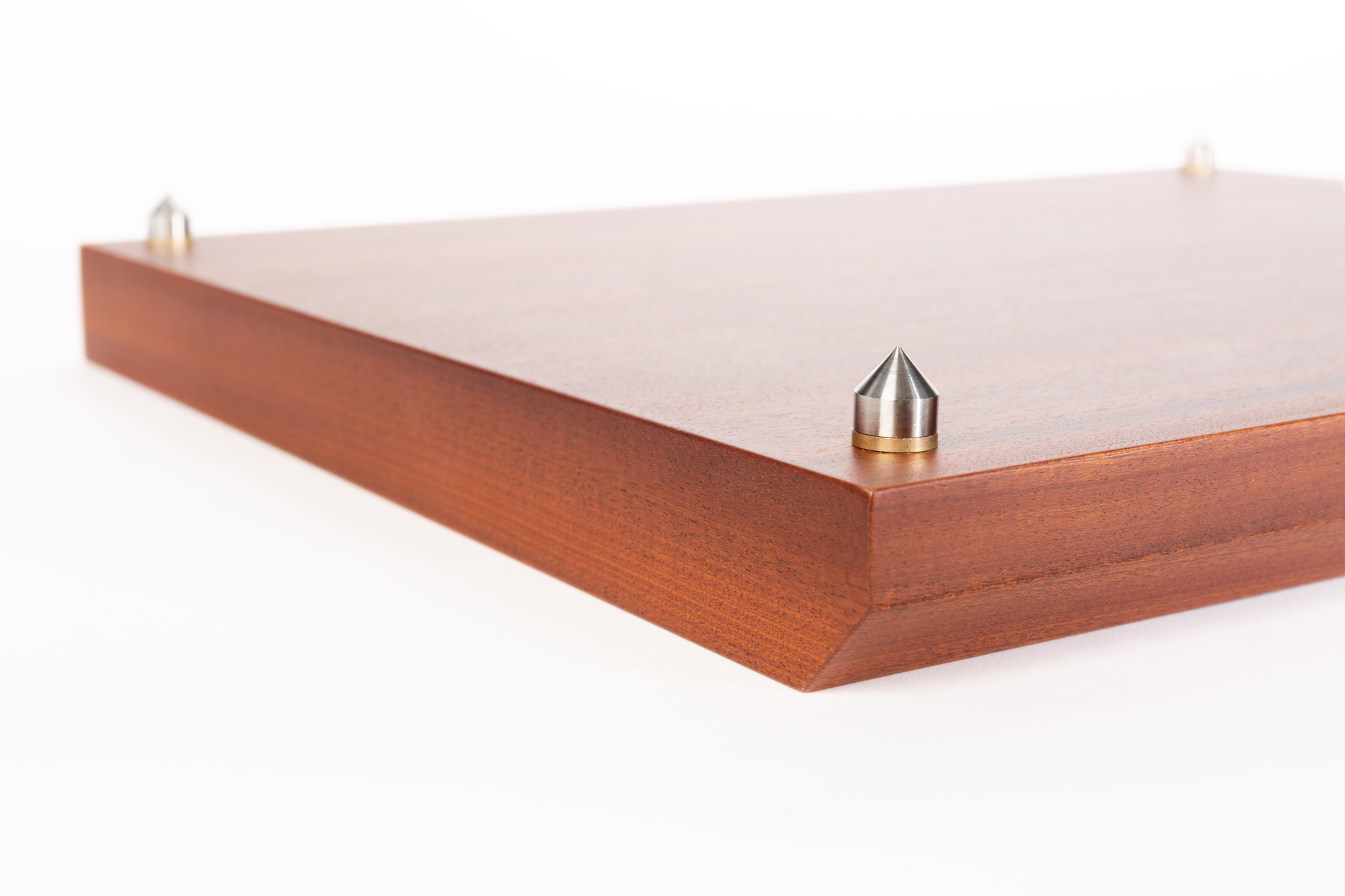 Platforma antywibracyjna. Konstrukcja typu sandwicz – sklejka, mdf, fornir naturalny (mahoń sapeli). Układ łączy wysoki współczynnik tłumienia płyty MDF z niskim współczynnikiem magazynowania energii przez sklejkę. Regulowane kolce zapewniają precyzyjne poziomowanie. Podkładki chronią podłoże przed zarysowaniem.