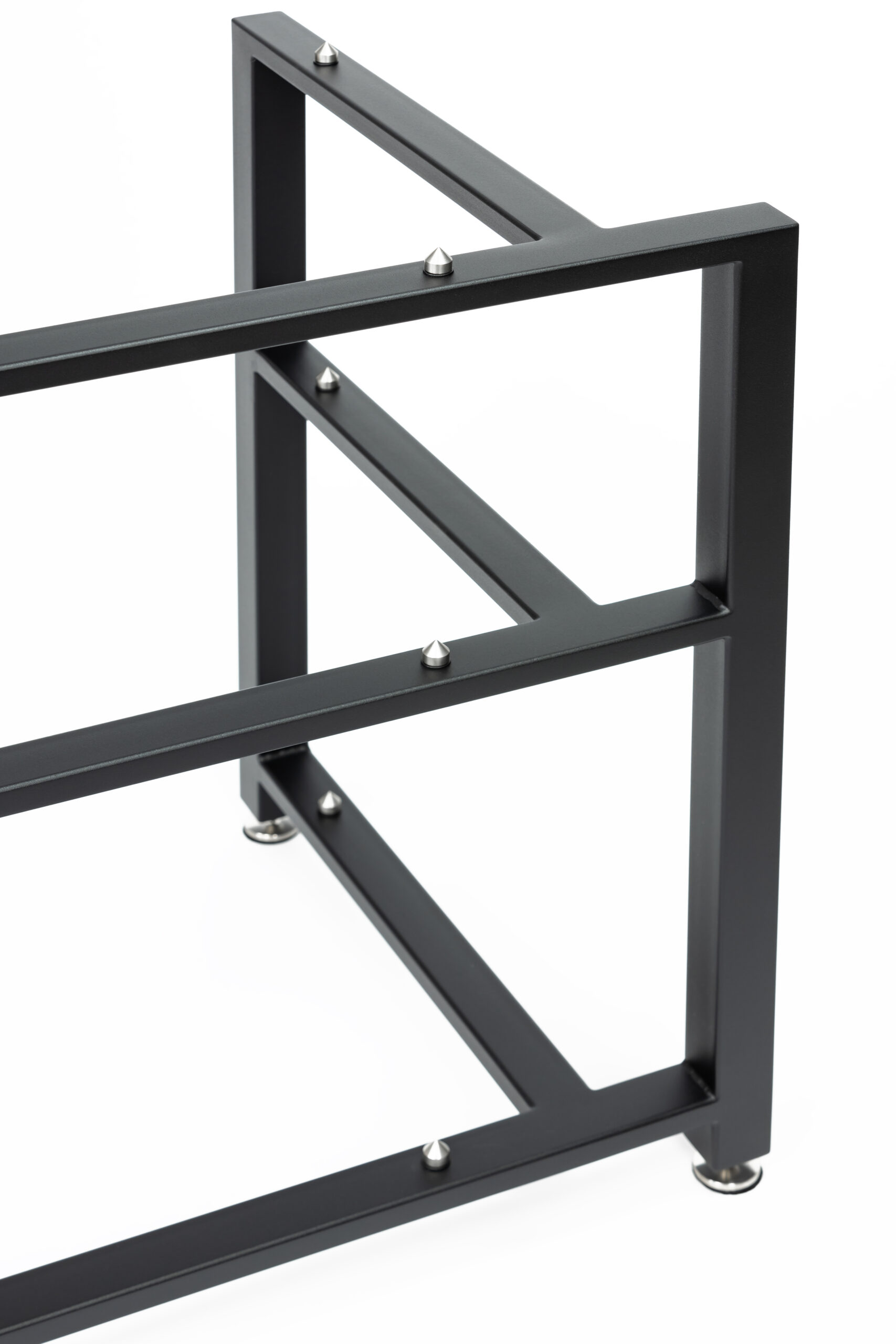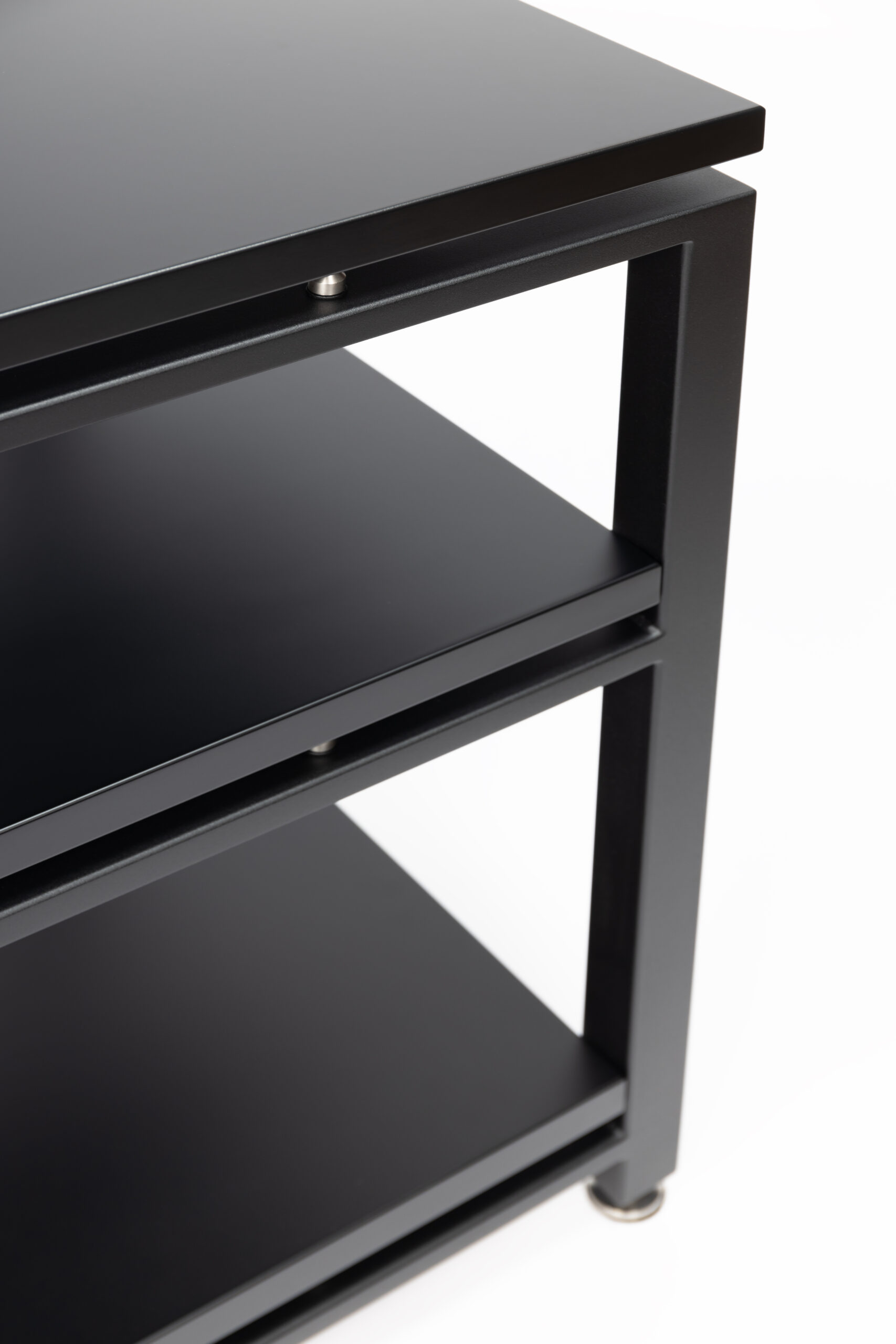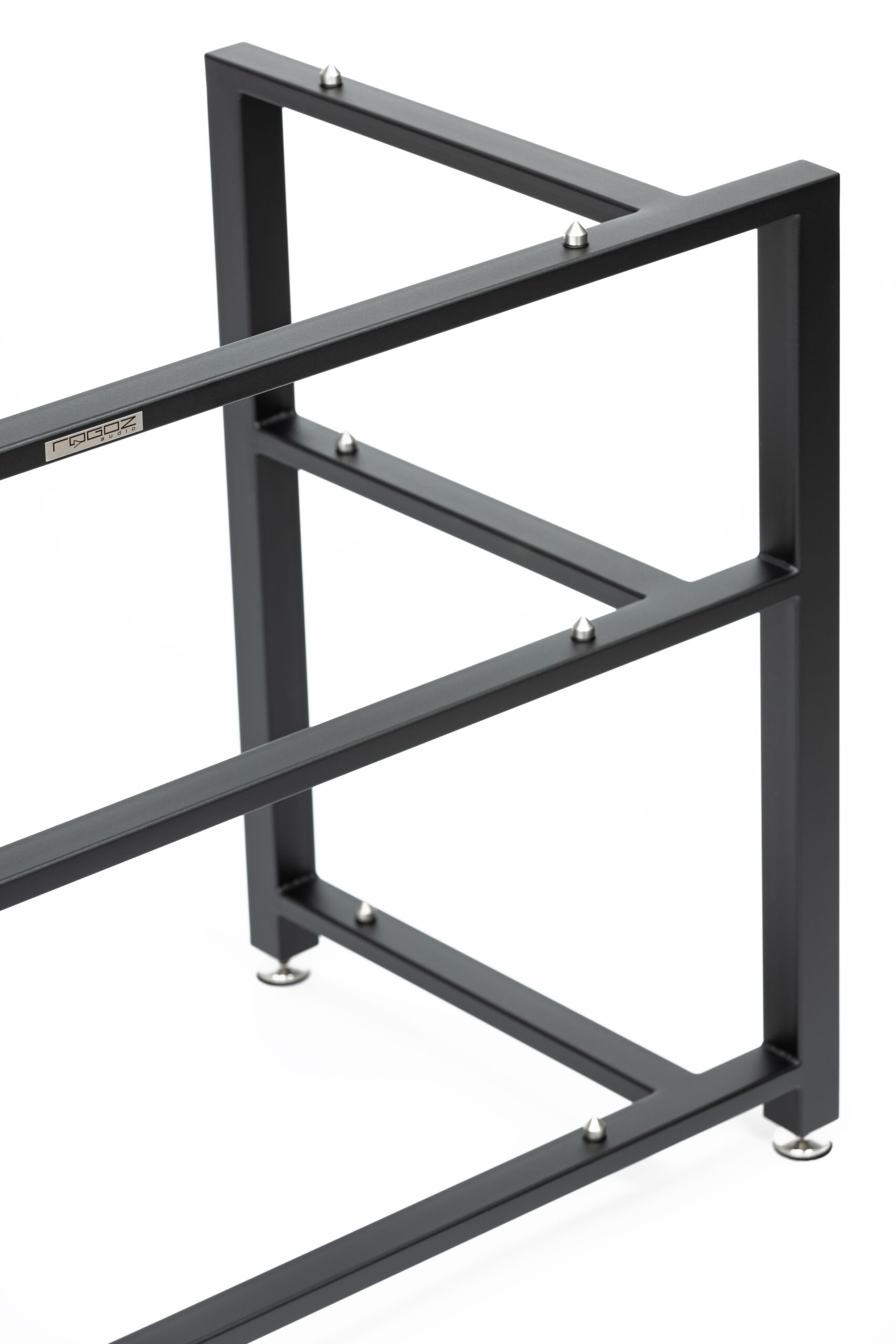 Stoliki antywibracyjne przeznaczone są pod komponenty audio wysokiej klasy. Konstrukcje zostały zestrojone przez odpowiednie połączenie stali stopowych i wysokowęglowych. Rama składa się z grubościennych nóg wykonanych ze stali węglowej S235JR (stosowanej do konstrukcji nośnych poddawanych dużym obciążeniom dynamicznym – np. w dźwigach) oraz łączących je poprzeczek ze stali stopowej o podwyższonej wytrzymałości S355. Precyzyjnie poziomowane odbywa się za pomocą regulowanych stożków antywibracyjnych.