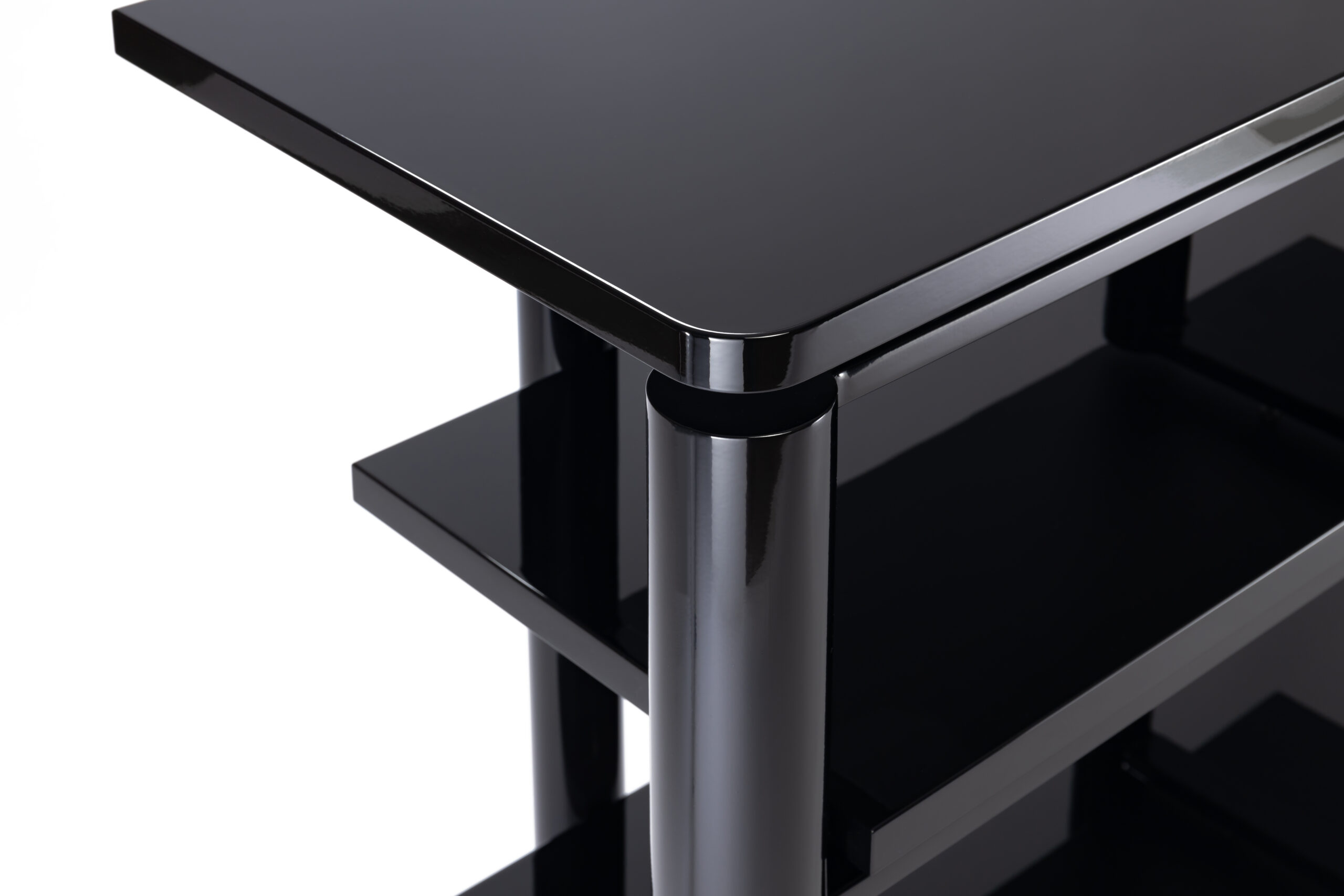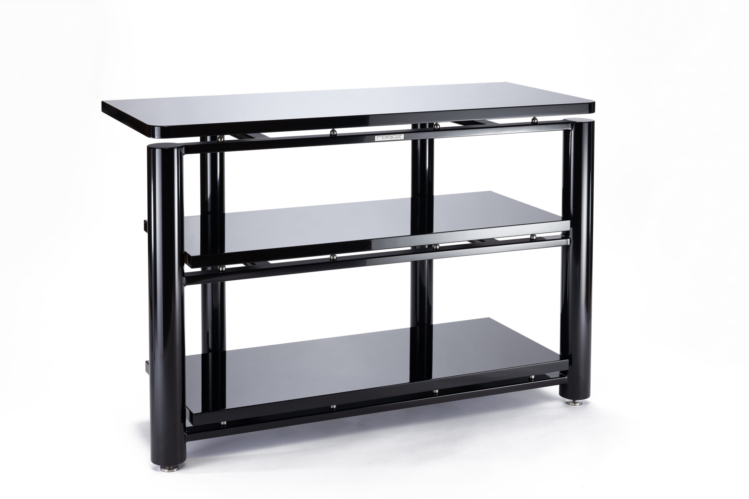 Stolik czteronożny, trzypoziomowy, umożliwiający ustawienie sześciu urządzeń o standardowej szerokości 44 cm – po dwa obok siebie na jednym poziomie. Balastowany piaskiem kwarcowym (zakręcane otwory umieszczone z tyłu nóg pozwalają na zmianę ilości oraz rodzaju balastu). Kolor stelaża – czarny (połysk).