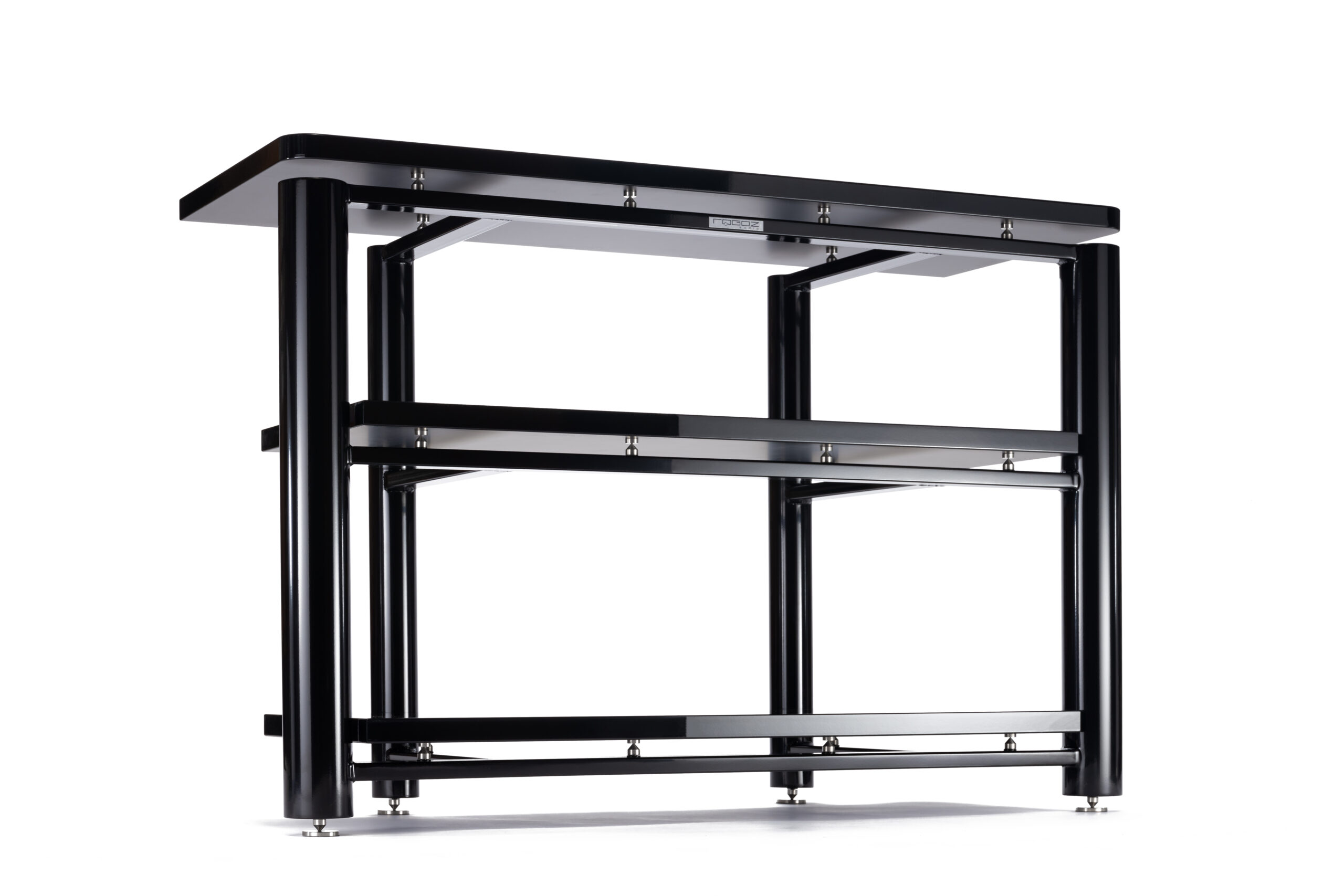 Stoliki antywibracyjne przeznaczone są pod komponenty audio wysokiej klasy. Konstrukcje zostały zestrojone przez odpowiednie połączenie stali stopowych i wysokowęglowych. Rama składa się z grubościennych nóg wykonanych ze stali węglowej S235JR (stosowanej do konstrukcji nośnych poddawanych dużym obciążeniom dynamicznym – np. w dźwigach) oraz łączących je poprzeczek ze stali stopowej o podwyższonej wytrzymałości S355. Precyzyjnie poziomowane odbywa się za pomocą regulowanych stożków antywibracyjnych.
